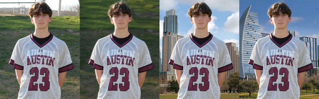 I’ve been shooting lacrosse regularly and loving that. I’ve realized how much I miss shooting sports. I forgot about the rush you get when your photo has the peak action, a good face and is well composed. One of my assignments was to do team photos for the lacrosse team I cover regularly. I fretted over the cruddy background. Used a fill flash to take care of the shadows on faces and ended up shooting most of the headshots backlit so the boys would not be squinting. I hated the backgrounds so much though that I made a photo of the turf on the field they play on the next weekend. So using YouTube videos to sharpen my PhotoShop skills, I gave every head shot a nice plain green turf background. I experimented with a skyline background which looked pretty cool but maybe was a bit too busy. It was fun playing around with it though.