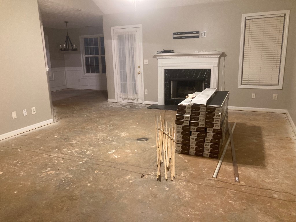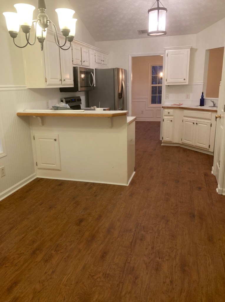 I rented a storage unit, well three of them, and had the movers put my things there until I could make some upgrades. My sister generously offered to let me stay with her until I could make my home habitable. Painting was the first thing on the list. I love color but I also think you need to live somewhere awhile to see what color you want rooms to be. We’d start with white walls. I have plenty of artwork to hang that will add color and interest. Next I had the flooring pulled up. There were some surprises there, like the wet floor pad under the wood laminate. I will admit that I had a minor freak-out that I had leaky walls. I cleaned the gutters pronto in case that was the culprit. I wondered what the inspection company (who has yet to resolve some other things they missed). actually did catch. After a couple days of rain we determined that there were no leaks. I am hypothesizing that the floors were mopped with a wet mop and that is where the dampness came from. These folks waited until the last minute to leave and didn’t have much time to clean. This might have been the job of preteen children who didn’t understand that you can’t wet mop wood laminate.